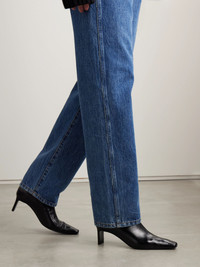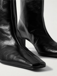 KHAITE's 'Ona' boots are distinguished by their sharp, narrow heel and the cutout at the back cuffs - a detail that also means they're more comfortable for walking. They're made from leather in a high-ankle profile with elegant square toes. Size & Fit - Fits true to size, take your normal size - Italian sizing Details & Care - Heel measures approximately 55mm/ 2 inches - Black leather (Calf) - Pull on