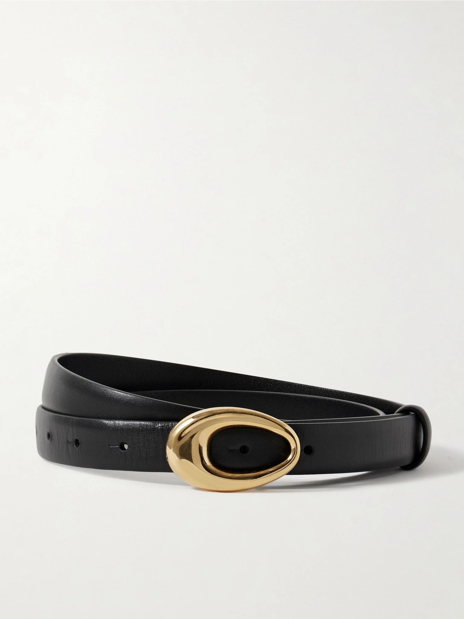 KHAITE's Olivia' belt will add a polished finishing touch to your outfits. It's made from supple leather and fastens with a sculptural gold-tone buckle. Size & Fit - Designed to be worn on the hips or waist - Measurements can be found in the link below Details & Care - Black leather (Calf) - Buckle fastening