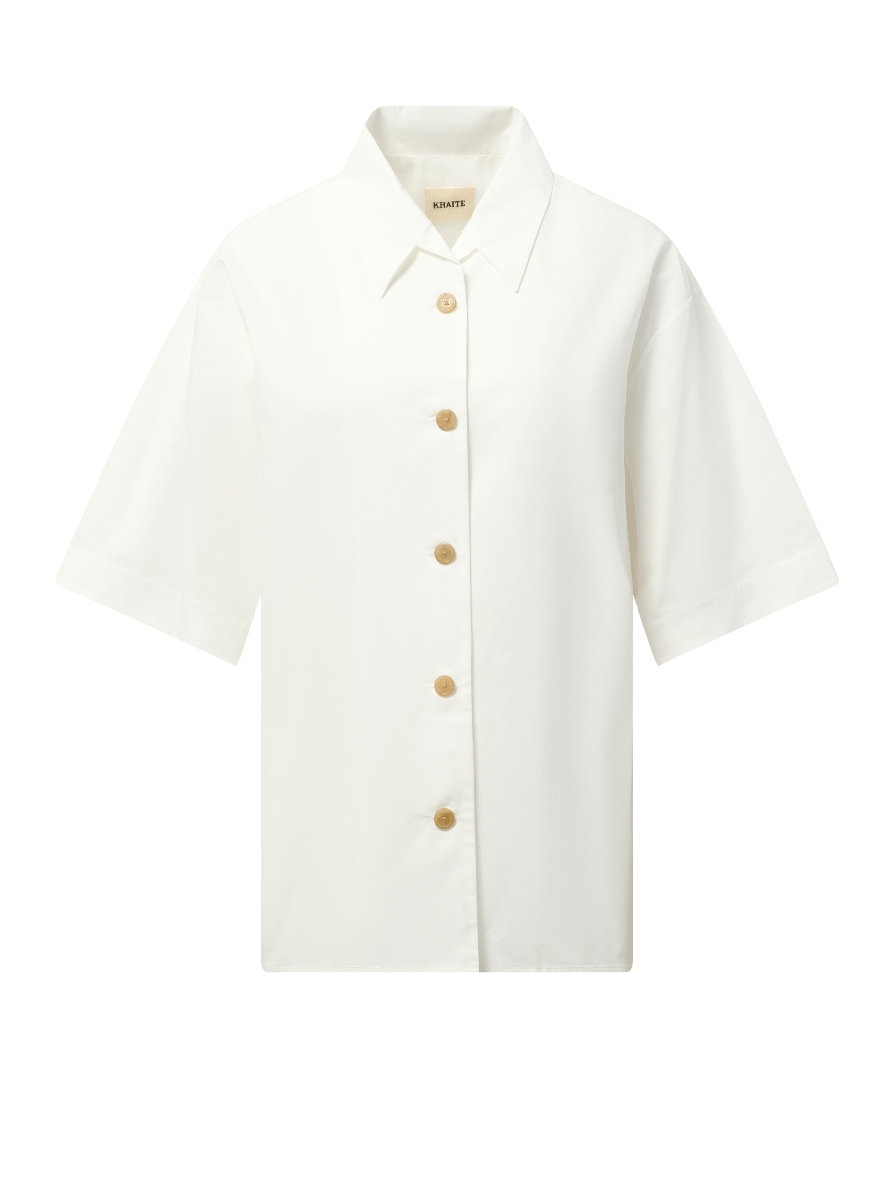 The Owen Top in White is a versatile must-have for your wardrobe. With its crisp white color and timeless design, it is perfect for any occasion. Made with high-quality materials, it ensures both style and comfort. Elevate your look with this classic top. - Composition: 100% Cotton - Cuban collar - Short sleeves - Front button fastening - Made in United States Model is 175 cm and wears size 4 SKU: 2372148 100