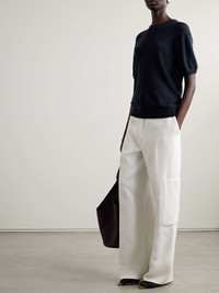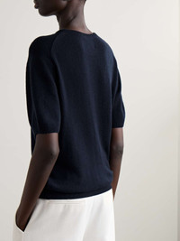 EDITORS'NOTES KHAITE’s understated foundation pieces are designed with quality at the forefront, so you can wear and love them for seasons to come. This 'Pierre' T-shirt is made from a soft and lightweight cashmere-blend for a slightly loose fit tempered by ribbed trims. SIZE & FIT - Fits true to size, take your normal size - Designed for a slightly loose fit - Lightweight knit - S/M/L sizing DETAILS & CARE - Midnight-blue cashmere-blend - Slips on - 97% cashmere, 3% elastane