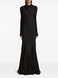 pleated open-back silk dress Highlights - Black - High neck - Long sleeves - Open back - Pleated skirt - Fitted bodice Made in Italy Composition Silk 100%