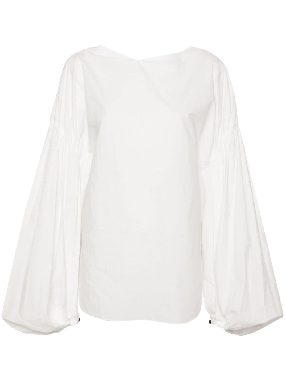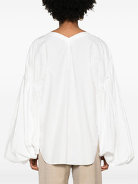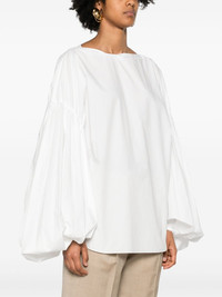 Quico cotton blouse Highlights - White - Cotton - Poplin texture - Wide neck - Drop shoulder - Long puff sleeves with buttoned cuffs - Short side slits - Curved hem Made in United States Composition Cotton 100% SIZE & FIT Model measurements Height 5 ft 10 in(1.77 m) Bust/Chest 32.28 in(82 cm) Hips 37 in(94 cm) Waist 25.19 in(64 cm) FittingInformation Designed to be unstructured, offering a loose fit throughout Made from a midweight non-stretch fabric This piece fits true to size – take your usual size