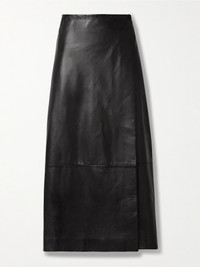 KHAITE's 'Quinn' skirt is made from panels of smooth leather and fastens at the side to create a wrap effect. It's fitted through the hips and has a sleek pencil profile. Size & Fit - Fits true to size, take your normal size - Maxi-length, designed to be worn at the waist - Supple, non-stretchy leather - Model is 180cm/ 5'11" and is wearing a US 2 Model measurements: - Bust: 79cm/ 31" - Waist: 61cm/ 24" - Hip: 89cm/ 35" Details & Care - Black leather - Button fastening at side - 100% leather - Specialist clean
