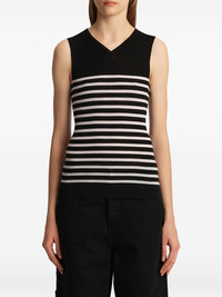 Renato top Highlights - Black and white - V-neck - Horizontal stripe pattern - Ribbed detailing Made in Italy Composition Wool 97%, Polyamide 2%, Polyurethane 1% SIZE & FIT FittingInformation Designed for a slim fit that sits just away from the body offering a close yet comfortable fit Made from a midweight stretch fabric, this piece offers elasticity and flexibility when worn Washing instructions Dry Clean Only