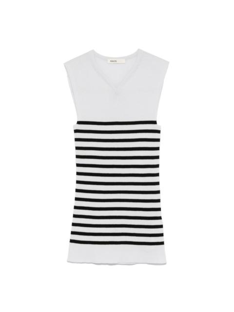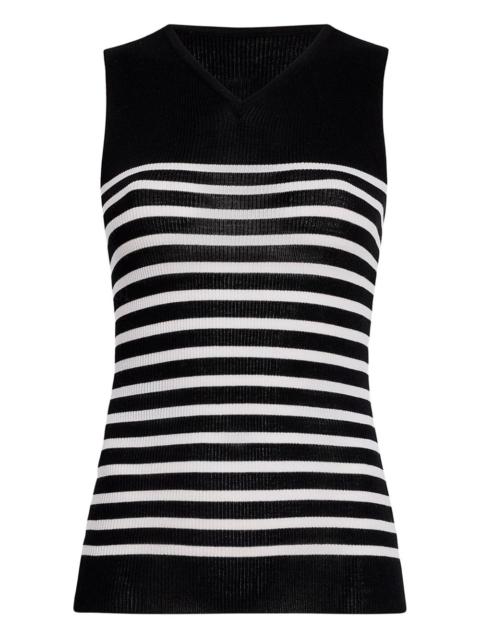 Renato top Highlights - Light beige - Horizontal stripe pattern - V-neck - Sleeveless Made in Italy Composition Wool 97%, Polyamide 2%, Polyurethane 1% SIZE & FIT Model measurements Height 5 ft 10 in(1.77 m) Bust/Chest 32.28 in(82 cm) Hips 35.03 in(89 cm) Waist 25.19 in(64 cm) Measurement LENGTH 24.8 in(63 cm) WAIST 18.89 in(48 cm) FittingInformation Designed for a slim fit that sits just away from the body offering a close yet comfortable fit Made from a midweight stretch fabric, this piece offers elasticity and flexibility when worn Washing instructions Dry Clean Only