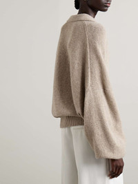 EDITORS'NOTES KHAITE’s sweater is an enduringly chic style you'll turn to for years. Spun from incredibly soft cashmere, it has a classic polo collar and voluminous blouson sleeves. The mélange 'Sepia' shade works especially well with white tailoring and jeans. SIZE & FIT - Fits true to size, however those who are between sizes should take the smaller size - Designed for an oversized fit, cut to be worn very loose - Long in the sleeves - Dropped shoulder seam - Mid-weight knit - Model is 177cm/ 5'10" and is wearing a size Small DETAILS & CARE - Mushroom mélange cashmere - Button fastenings along front - 100% cashmere; buttons: 100% horn (Buffalo) - Designer color: Sepia
