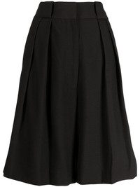 Rillo wide-leg pleated shorts Crafted from a virgin wool blend, KHAITE’s Rillo shorts arrive here in an understated black hue that allows shape and construction to take centre stage. The pair is designed to sit high at the waist and fall to a voluminous wide-leg silhouette with pleat detailing. Highlights - Black - Virgin wool blend - High waist - Concealed front fastening - Belt loops - Two side slit pockets - Two rear welt pockets - Pleat detailing - Wide leg - Knee-length Made in United States Composition Body: Virgin Wool 75%, Viscose 25% SIZE & FIT Model measurements Height 5 ft 9 in(1.76 m) Bust/Chest 31.1 in(79 cm) Hips 35.03 in(89 cm) Waist 24.4 in(62 cm) FittingInformation Designed with a voluminous wide-leg fit Made from a midweight non-stretch fabric This piece fits true to size – take your usual size