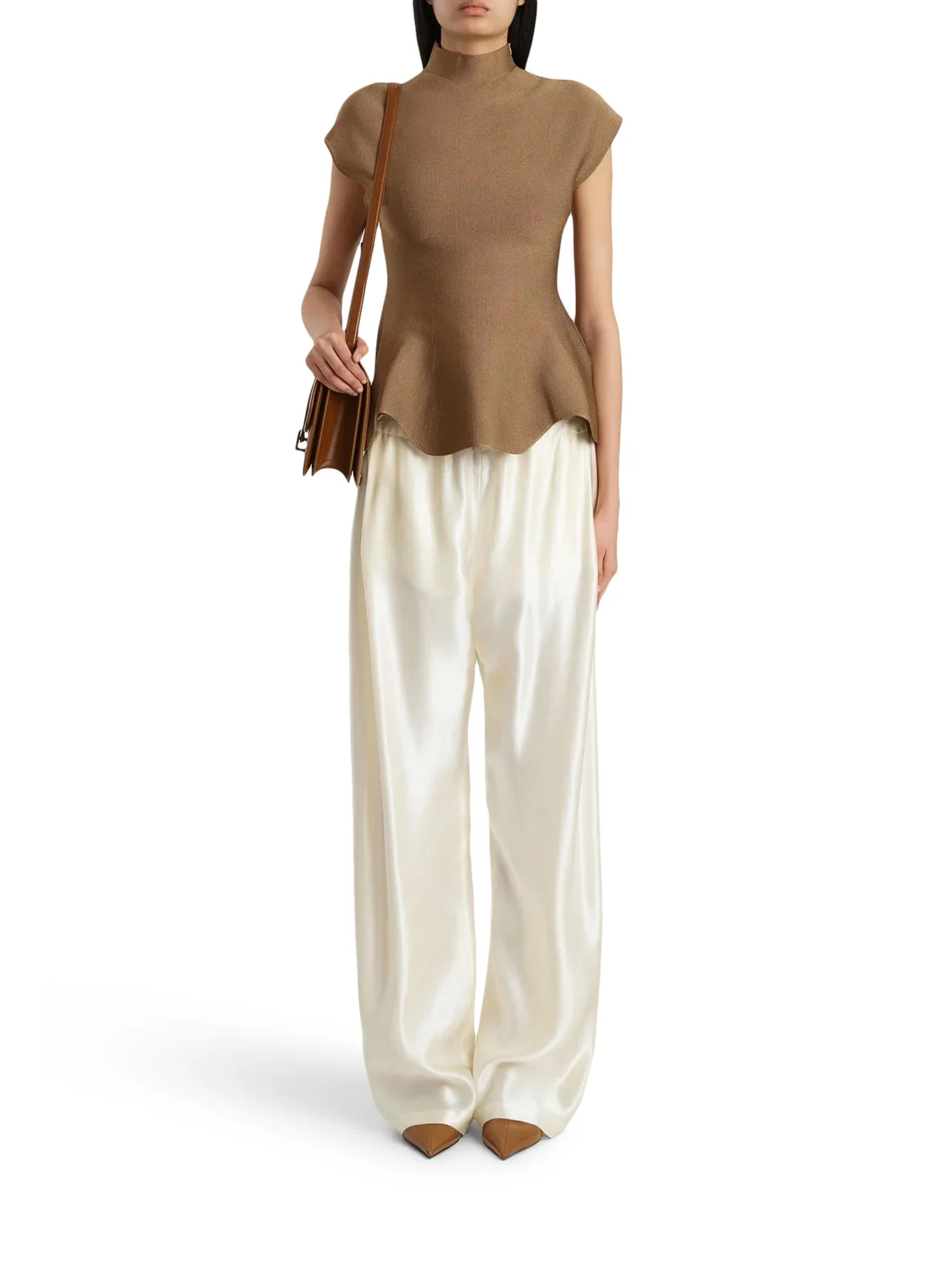 - Elastic waist - Herringbone grosgrain drawstring waist - Relaxed silhouette - Wide leg - Crafted from lightweight, shimmering satin - Finished with a hidden pocket - Straight, finished hem - Color: Cream Made in Italy Composition: Viscose 59% Viscose 41% Cupro Color code: 103 CREAM 31934225