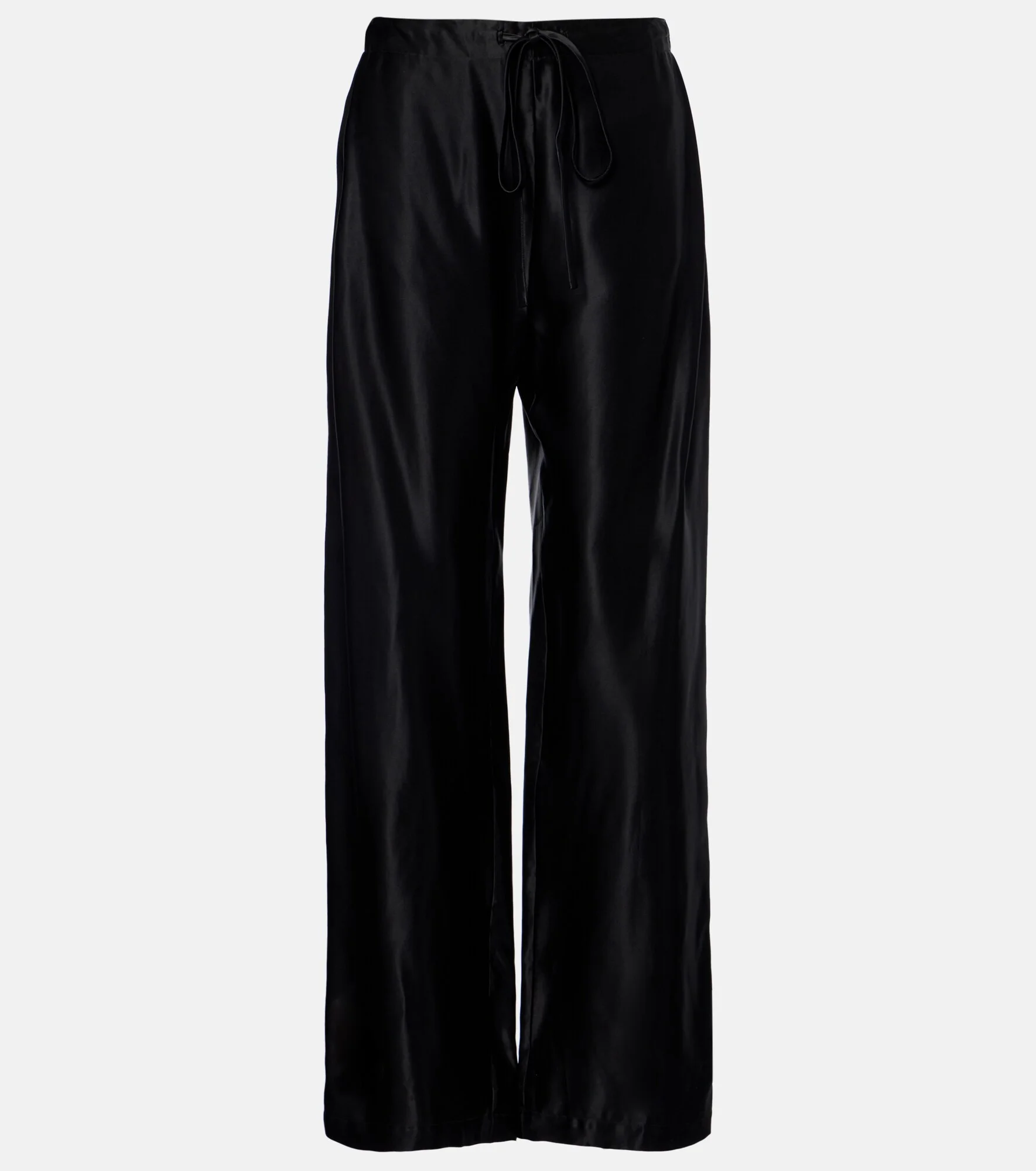 Khaite's minimalist designs exude modern sophistication and effortless elegance. The Rohen pants are a lustrous style crafted from luminous satin to a wide-leg silhouette with a drawstring waist for an always-tailored fit. Product Details - Material: 59% viscose, 41% cupro - Care instructions: dry clean - Made in the USA - Color: black - Designer color name: Black - Item color: black - Elasticated drawstring waist - Pockets: side slit pockets - Item number: P01145684 Size & Fit - True to size - Elasticated waist - Adjustable at the waist - Non-stretchy fabric - Wide-leg - Height of model is 175cm-69" and wears a size XS