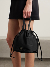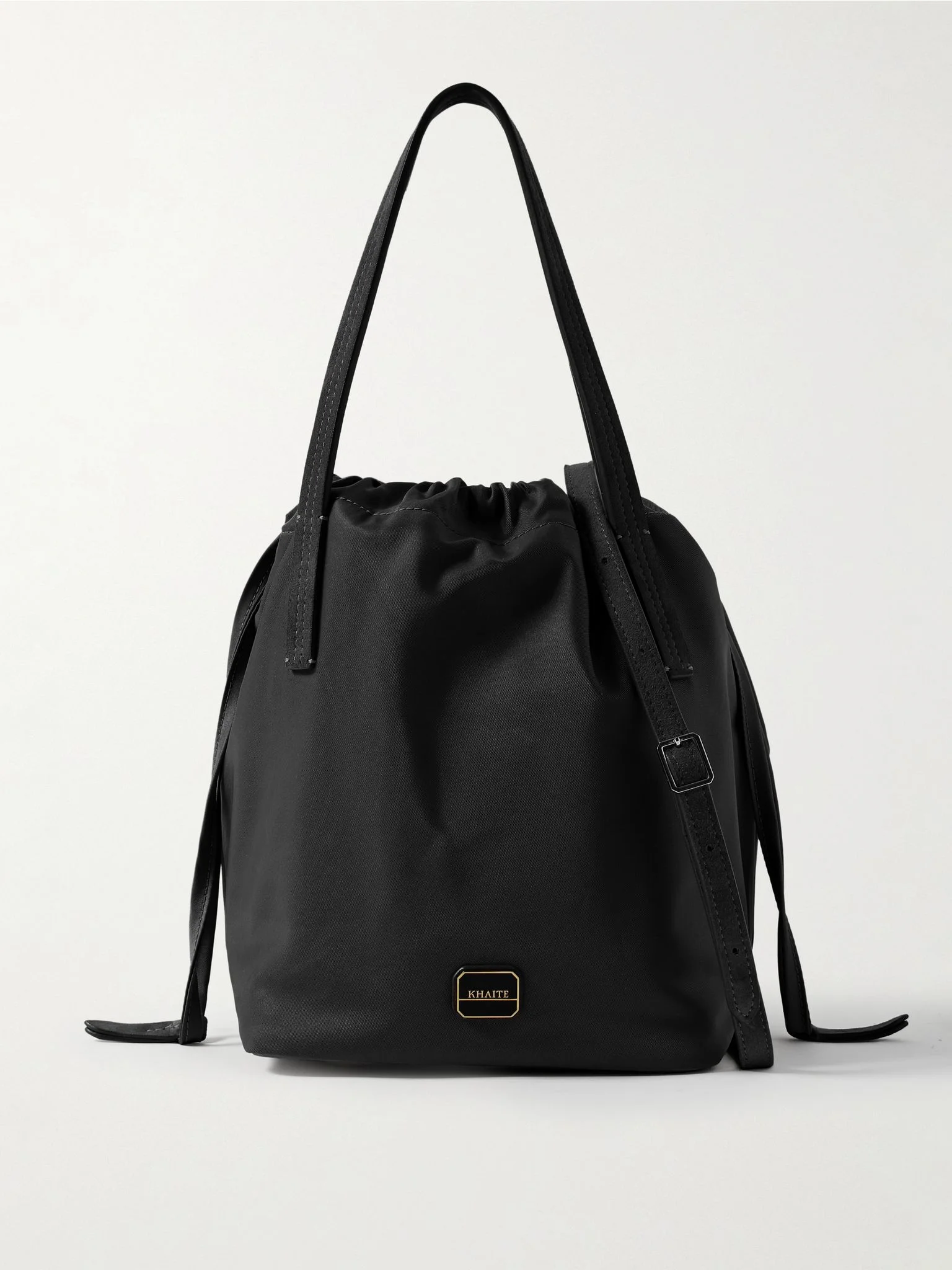 KHAITE's 'Rory' bag is made from durable shell with leather straps and a matching slip pocket at the back. The bucket shape is perfectly sized to stow your wallet, sunglasses and a few cosmetics. Details & Care - Black shell and leather (Calf) - Top handles, detachable adjustable shoulder strap - External card slot - Unlined - Drawstring top
