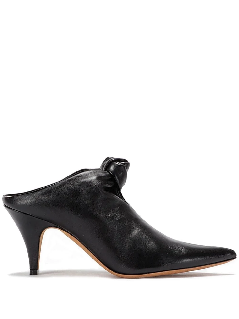 Rowan 75mm mules Highlights - Black - Calf leather - Crinkled finish - Pointed toe - Cut-out detailing - Knot detailing - Branded insole - 75mm stiletto heel - Leather sole Made in Italy Composition Outer: Calf Leather 100% Lining: Calf Leather 100% Sole: Calf Leather 100% SIZE & FIT Measurement HEEL 2.95 in(7.5 cm)