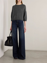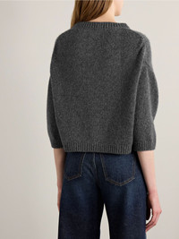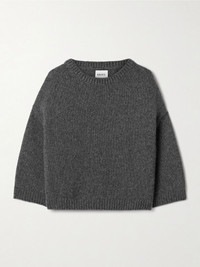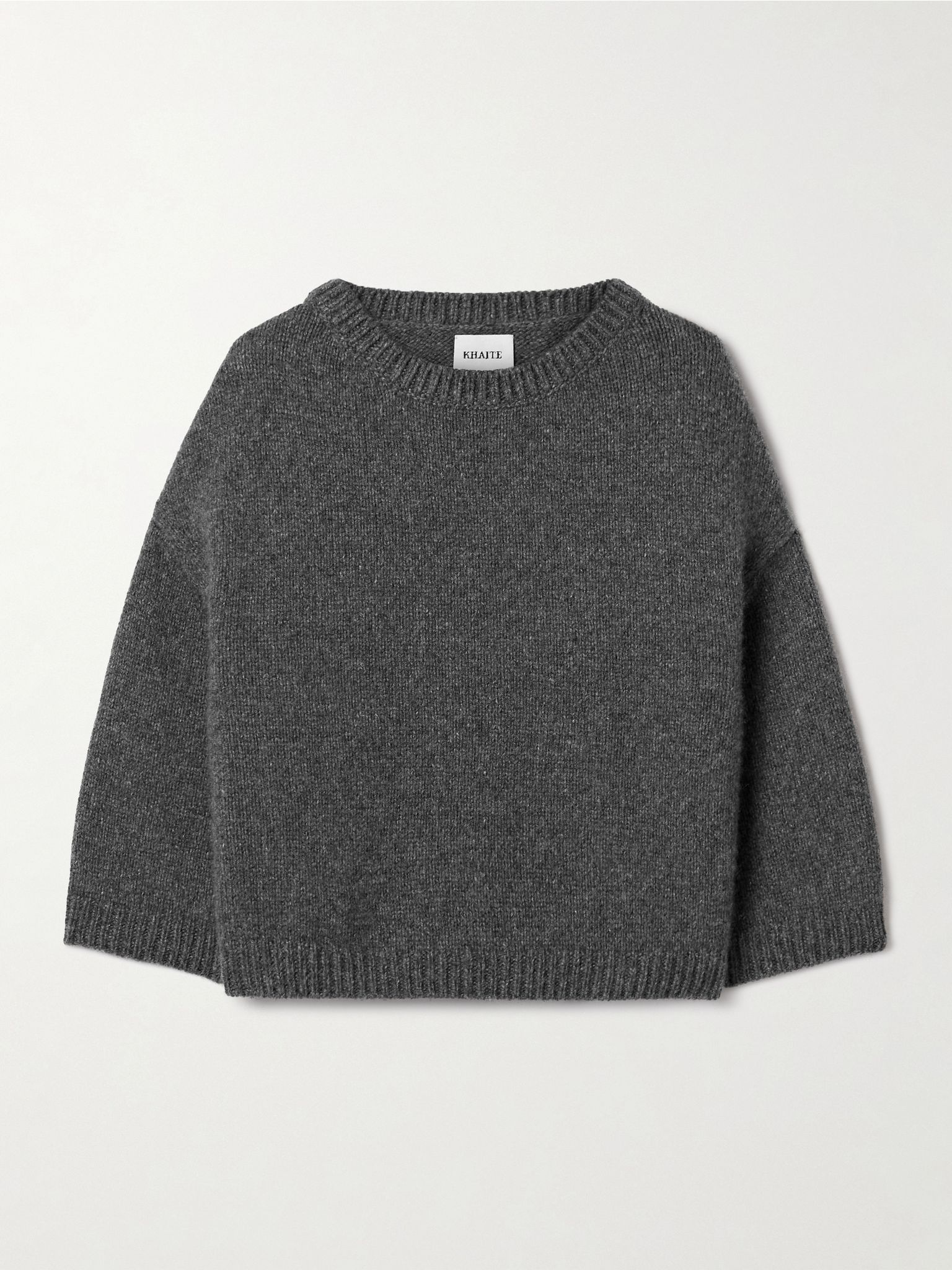 Slight tweaks to the classic shape make KHAITE's 'Sabina' sweater feel distinct. Designed with dropped, slightly snug shoulders, it's made from soft, insulating cashmere and has ribbed trims outlining the crewneck and abbreviated sleeves. Size & Fit - Fits true to size, take your normal size - Designed for a relaxed fit - Dropped shoulder seam - Cropped sleeves - Lightweight knit - Model is 180cm/ 5’11” and is wearing a size Small Details & Care - Dark-gray cashmere - Slips on - 100% cashmere - Designer color: Stone