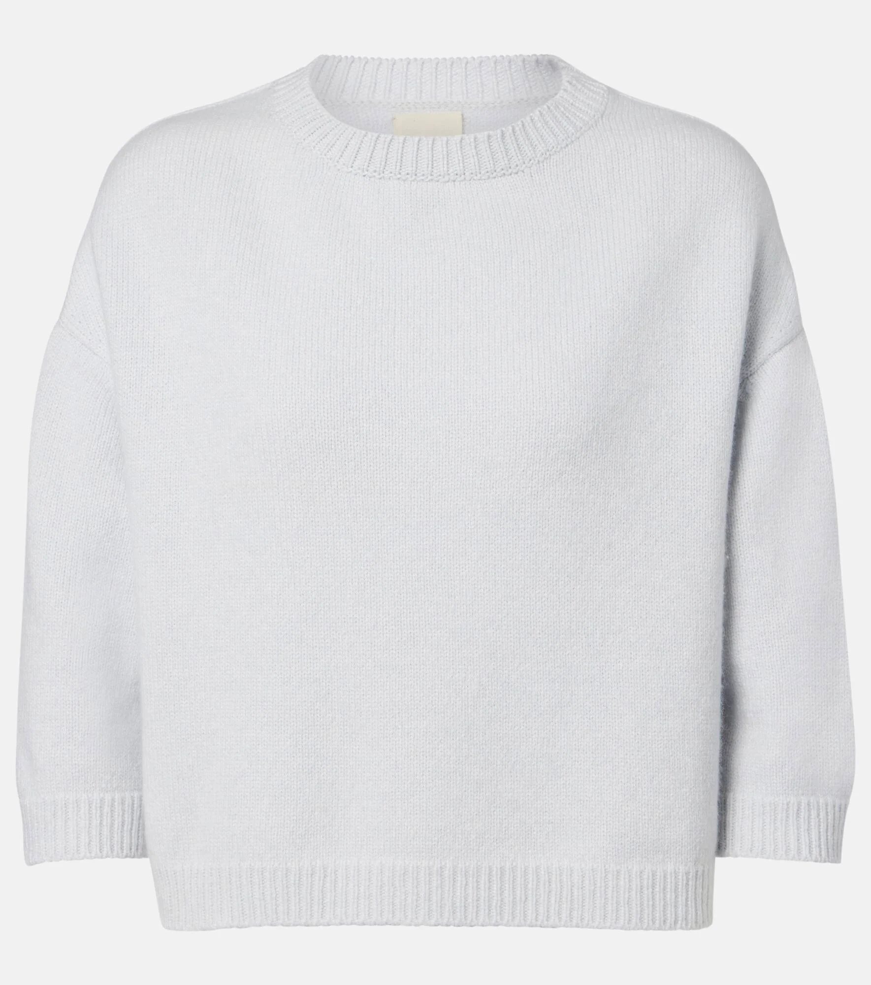 Khaite's minimalist designs exude modern sophistication and effortless elegance. Made in Italy purely from cashmere, the Sabina sweater is a cropped piece with mid-length sleeves and ribbed-knit trims. Product Details - Material: 100% cashmere - Care instructions: dry clean - Made in Italy - Color: blue - Designer color name: Ice Blue - Item color: gray - Cuff: ribbed - Hem: ribbed - Item number: P01145728 Size & Fit - True to size - Dropped shoulders - Designed for a loose fit - Stretchy fabric - Slightly cropped - Height of model is 180cm-71" and wears a size XS