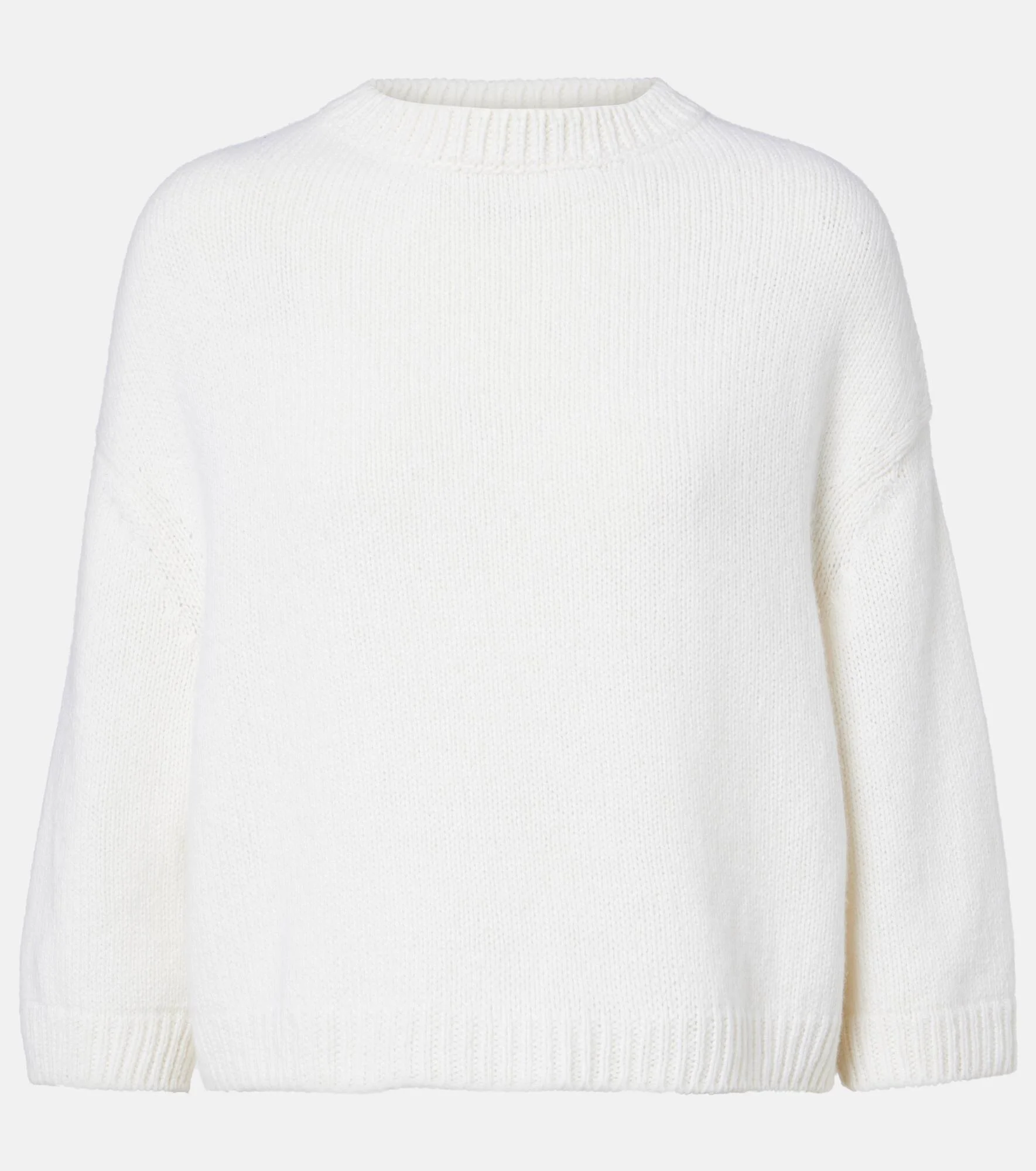 Khaite's minimalist designs exude modern sophistication and effortless elegance. The Sabina sweater is made from cashmere to a cropped silhouette with ribbed-knit trims. Product Details - Material: 100% cashmere - Care instructions: dry clean - Made in Italy - Color: white - Designer color name: Glaze - Item color: white - Collar: crewneck - Cuff: ribbed - Hem: ribbed - Item number: P01113229 Size & Fit - True to size - Dropped shoulders - Designed for a loose fit - Slightly cropped - Height of model is 180cm-71" and wears a size XS