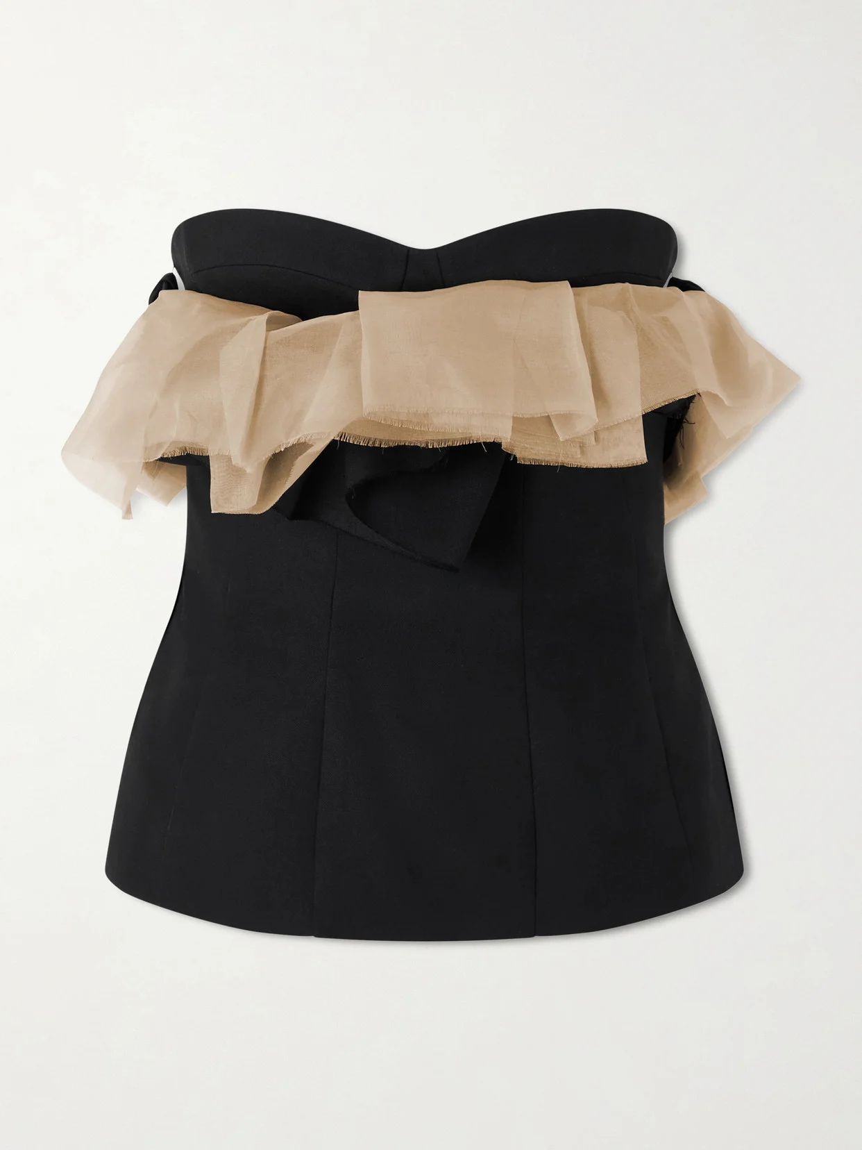 Sal Frayed Organza-trimmed Wool And Silk-blend Cady Bustier Top