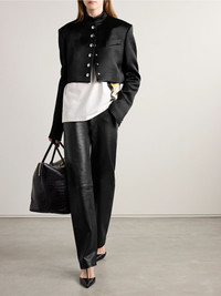 KHAITE's 'Samuelson' jacket is reminiscent of military styles, thanks to the high neckline and polished silver-tone snaps. Made from black duchesse-satin, it has a boxy, cropped shape and angular padded shoulders for structure. Details & Care - Black duchesse-satin - Snap fastenings through front - 100% viscose