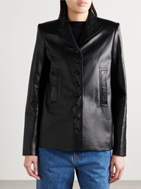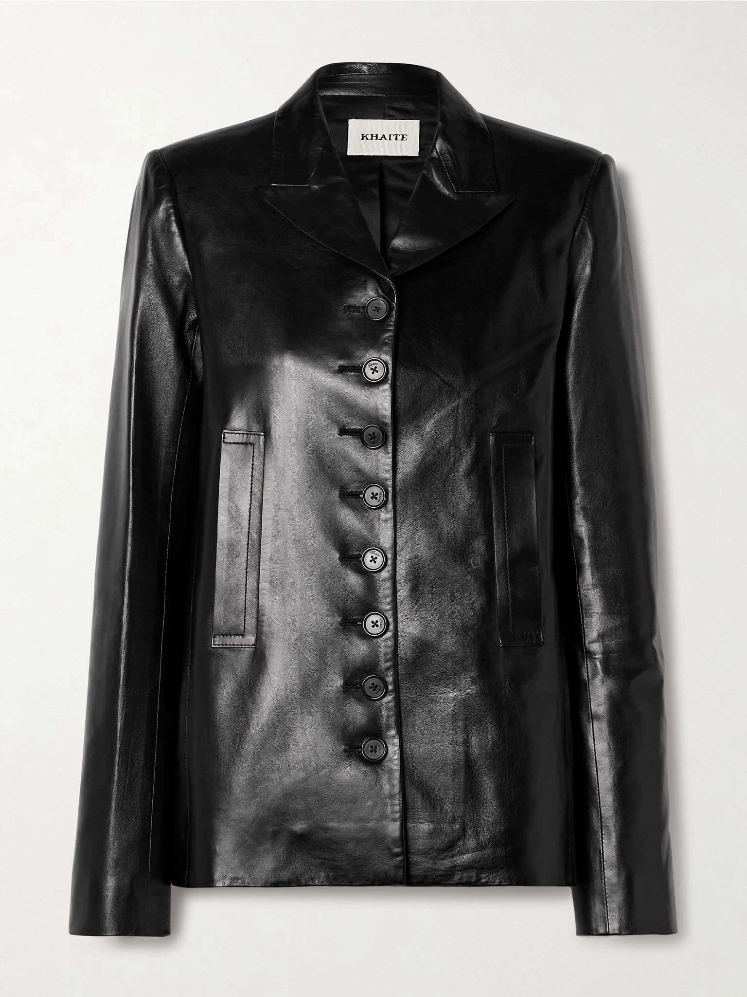 KHAITE's 'Saraphina' jacket is cut in a slightly loose silhouette with padded shoulders that give it structure. It's tailored from black leather and detailed with vertical welt pockets, a row of horn buttons and a full satin-twill lining. Details & Care - Black leather - Button fastenings through front - 100% leather (Lamb); buttons: 100% horn (Buffalo) - Specialist clean