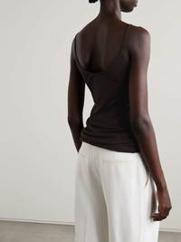 EDITORS'NOTES Soft, simple and perfect for layering, KHAITE's 'Selee' tank is just the comfortable yet stylish foundation piece that will go far in your wardrobe. It's made from dark-brown ribbed-knit and has a slim fit with a scooped neckline. SIZE & FIT - Fits true to size, take your normal size - Designed for a slim fit - Lightweight, stretchy fabric - Model is 177cm/ 5'10" and is wearing a size Small DETAILS & CARE - Dark-brown ribbed-knit - Slips on - 100% viscose