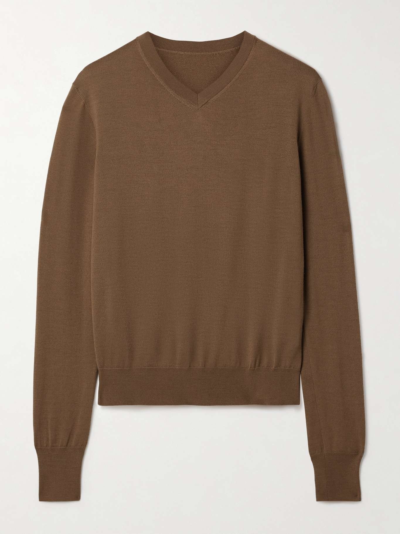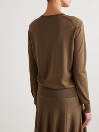 EDITORS'NOTES KHAITE's minimalist approach to design results in timeless pieces like this 'Senta' sweater. It's knitted from fine wool-blend in a versatile brown hue called 'Cafe'. Team it with smart tailoring or jeans, depending on where you're headed. SIZE & FIT - Fits true to size, take your normal size - Designed for a slightly loose fit - Lightweight knit - Model is 175cm/ 5'9" and is wearing a size Small DETAILS & CARE - Brown wool-blend - Slips on - 99% wool, 1% polyamide - Designer color: Cafe