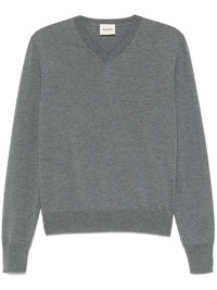Senta sweater Highlights - Medium grey - Wool blend - Knitted construction - Melange effect - Ribbed v-neck - Long sleeves - Ribbed cuffs and hem Made in Italy Composition Wool 99%, Polyamide 1% SIZE & FIT Model measurements Height 5 ft 11 in(1.8 m) Bust/Chest 32.67 in(83 cm) Hips 36.22 in(92 cm) Waist 24.4 in(62 cm) FittingInformation Designed for a relaxed fit, this piece allows for comfort and movement when worn Made with a midweight knit, this piece offers some stretch