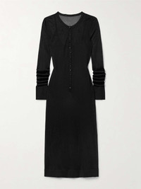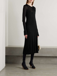 EDITORS'NOTES Effortlessly chic silhouettes are KHAITE's strong suit, and this fine-knit 'Shaine' dress serves as perfect proof. It's underpinned with an internal slip and nips in at the waist. Style yours with opaque tights and the brand's 'Arden' sandals. SIZE & FIT - Fits true to size, take your normal size - Intended for a slightly loose fit - Designed with a slim-fitting slip - Lightweight knit - Model is 180cm/ 5’11” and is wearing a size Small DETAILS & CARE - Black viscose - Button fastenings along front - 100% viscose
