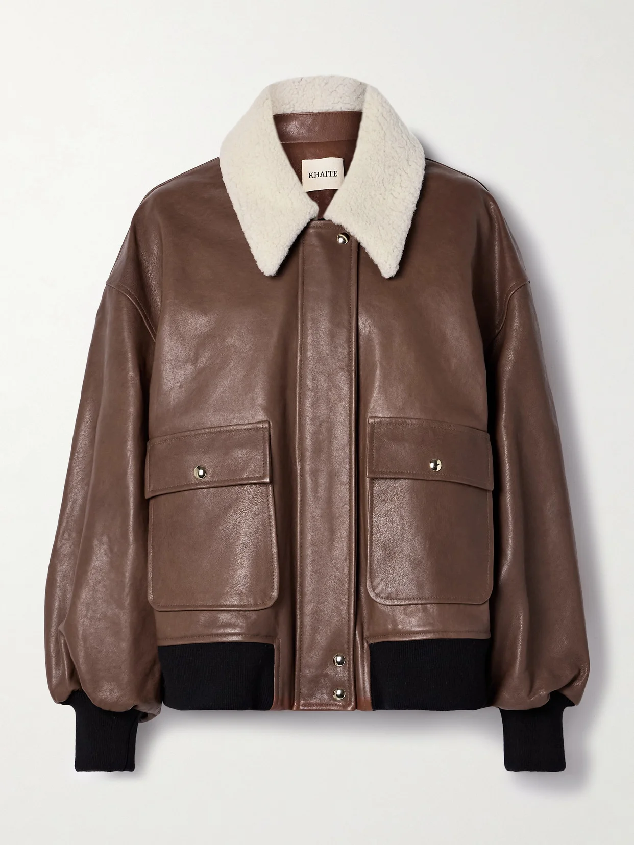 KHAITE's 'Shellar' jacket is an elevated take on classic bomber styles. It's made from supple leather in an oversized silhouette and has a fluffy shearling collar and contrasting ribbed trims. Full satin lining ensures easy layering.