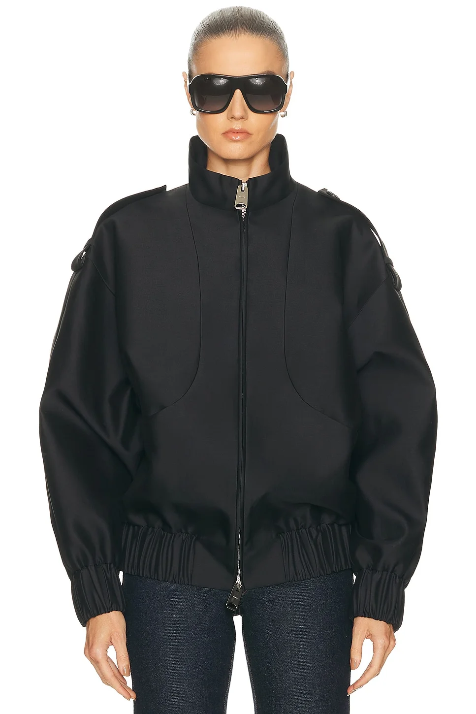 Details - Self: 71% virgin wool, 29% silk - Lining: 100% cupro - Made in USA - Dry clean - Front dual zipper closure - Hidden front seam-pockets - Midweight woven textile - Elasticized cuffs and hem - Epaulettes at shoulders - Our Style No. KTAH-WO115 - Manufacturer Style No. 6200577