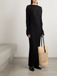 KHAITE's 'Sigrid' maxi dress has a low, scooped back that adds unexpected drama to the otherwise understated design. Made from ribbed merino wool-blend, it has a slim fit and is gently distressed along the neckline and long, slouchy sleeves. Size & Fit - Fits true to size, take your normal size - Intended for a slim fit - Long in the sleeves - Dropped shoulder seam - Lightweight knit - Model is 180cm/ 5'11" and is wearing a size Small Model measurements: - Bust: 79cm/ 31" - Waist: 61cm/ 24" - Hip: 89cm/ 35" Details & Care - Black merino wool-blend - Slips on - 99% merino wool, 1% polyamide