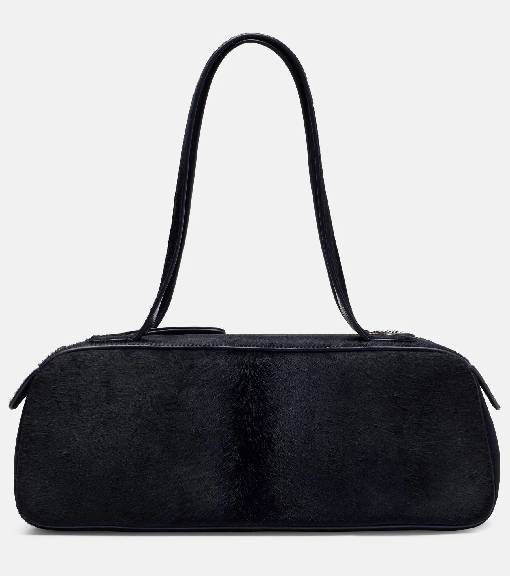 Clean lines and a sculptural silhouette characterize Khaite's Simona shoulder bag. An elegant design to carry on repeat, it's made in Italy from calf hair with long straps and zipped top closure. Product Details - Material: calf hair - Lining: calf leather - Made in Italy - Designer color name: Midnight Navy - Item color: blue - Closure: zipped top - Top handles - Item number: P01071052 Size & Fit - Height 13cm-5" - Width 35cm-14" - Depth 7cm-3" - Length of handles 49cm-19.5"