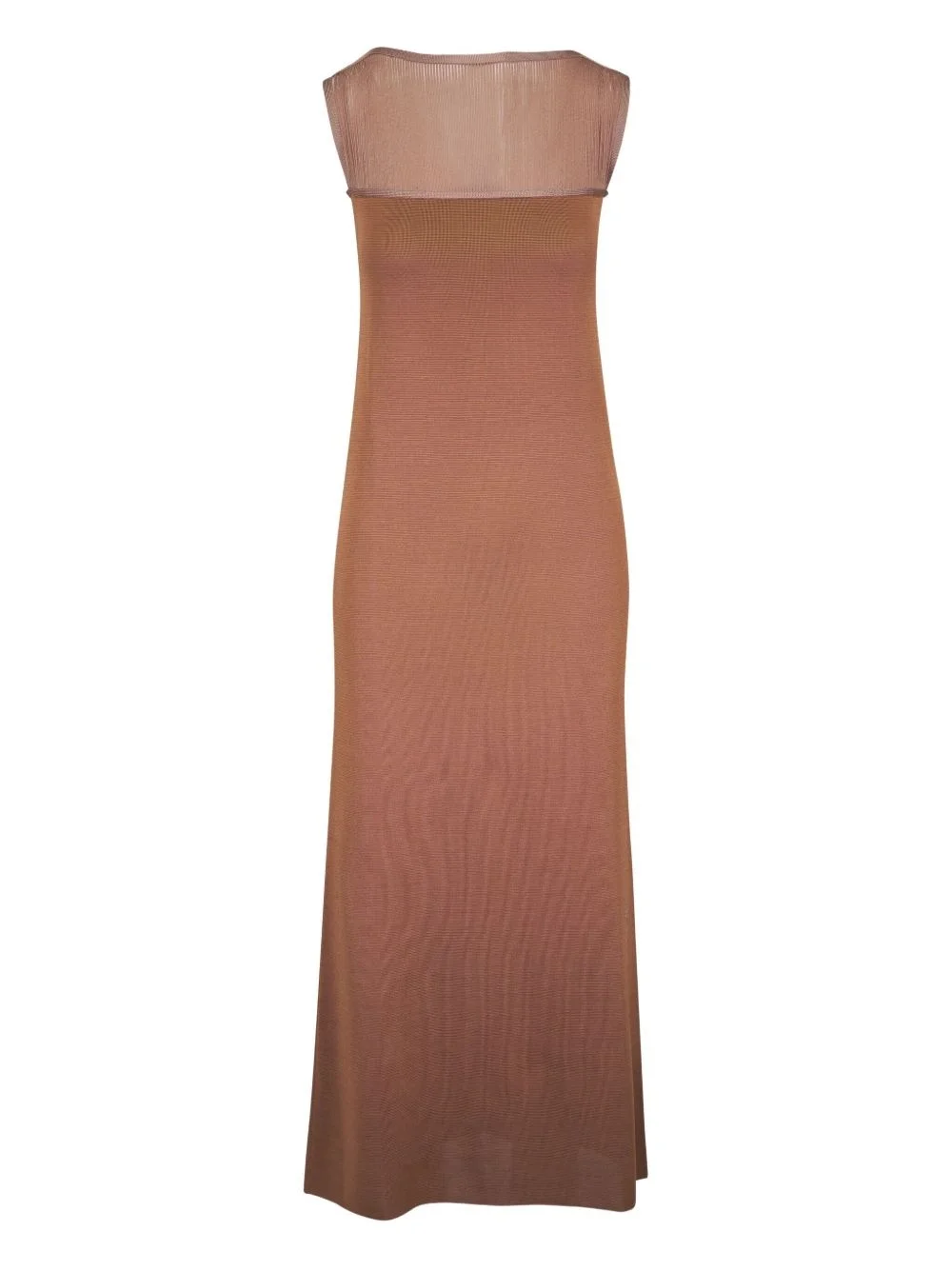 sleeveless dress Highlights - Almond beige - Boat neck - Fringe detailing Made in Italy Composition Viscose 100%