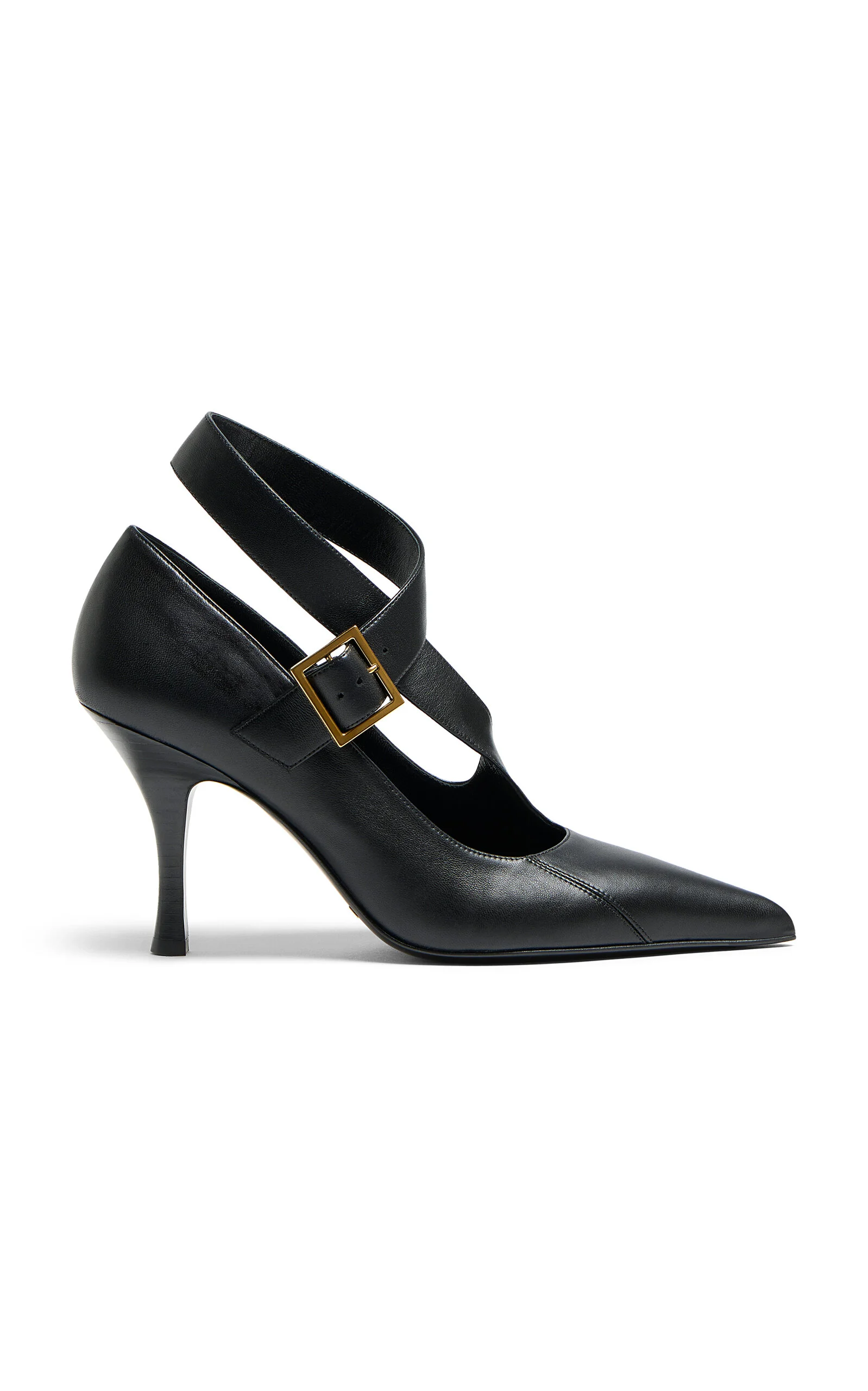 Khaite's shoes are designed to be walkable, not ornamental — you'll never find a pair that's higher than a midi heel. The label updates these classic heeled pumps with an asymmetric strap that wraps around the ankle. They’re made to last, from smooth lambskin and calfskin at the sole. PRODUCT DETAILS - Heel measures approximately 85mm/ 3.5” - Buckle fastening - Composition: 100% lambskin; sole: 100% calfskin - Made in Italy SIZE & FIT - Heel height measures 85 mm