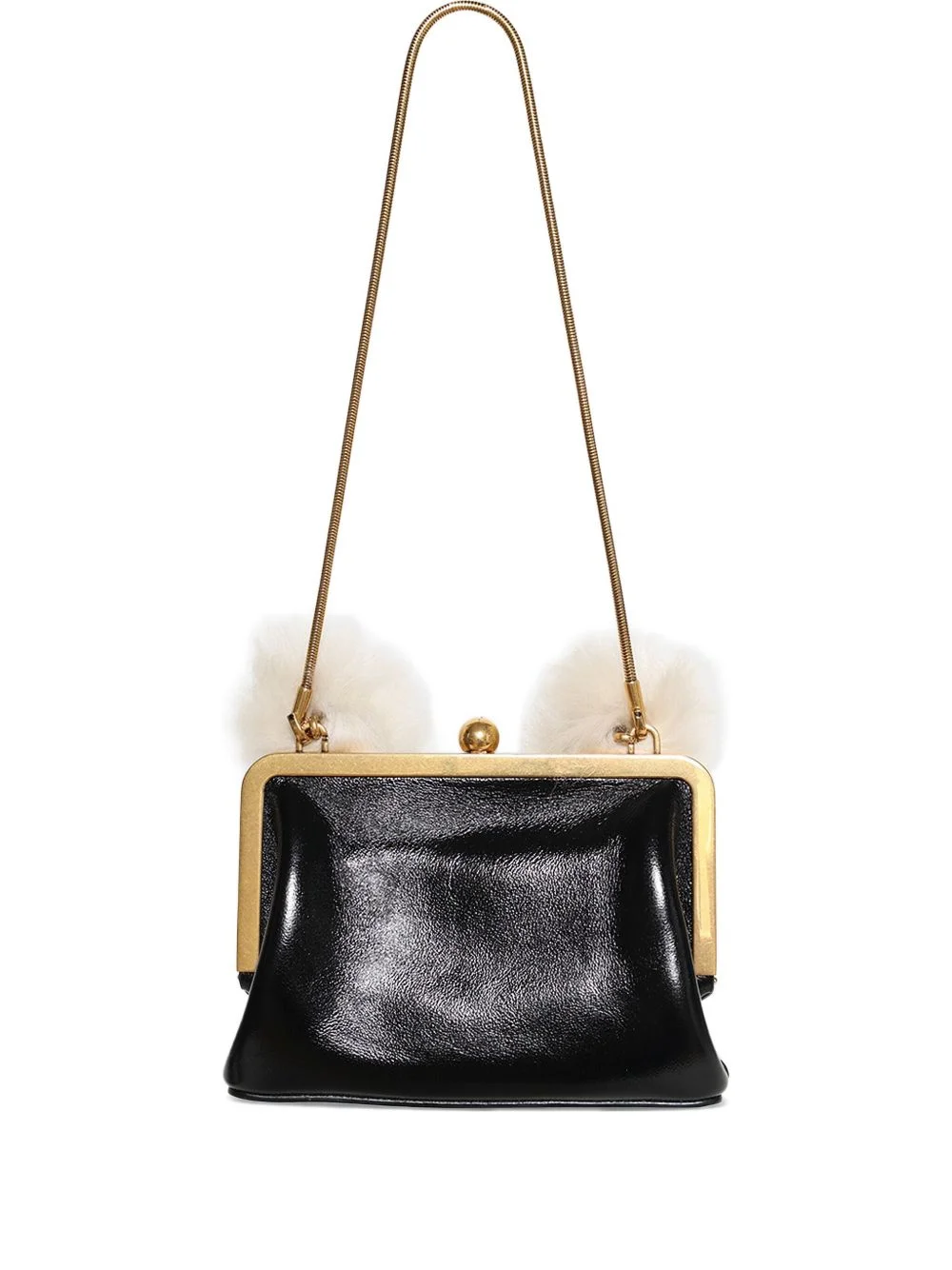 small Lilith shearling-strap shoulder bag Highlights - Black - Leather construction - Gold-tone clasp - Shearling strap - Chain strap Made in Italy Composition CALFSKIN 100%, Sheep Skin/Shearling 100% SIZE & FIT Measurement DEPTH 1.49 in(3.8 cm) HEIGHT 5 in(12.7 cm) WIDTH 7 in(17.8 cm)