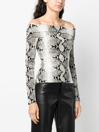 snakeskin-print off-shoulder top