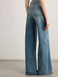 KHAITE’s ‘Dane’ jeans are designed with a high waist and wide legs, ensuring a universally flattering design and elongating effect. They're made from denim in a faded blue ‘Heath’ wash and look chic styled with everything from a sweater to a feminine blouse. Details & Care - Blue denim - Button and concealed zip fastening at front - 98% cotton, 2% polyurethane - Designer wash: Heath