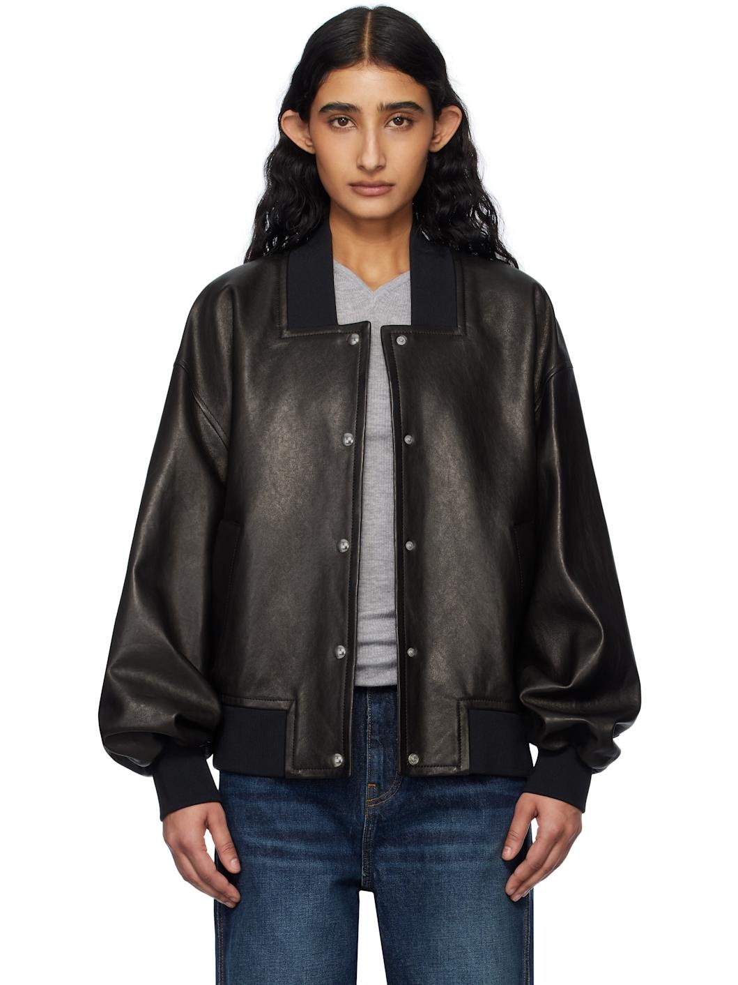 Black Spence Leather Bomber Jacket