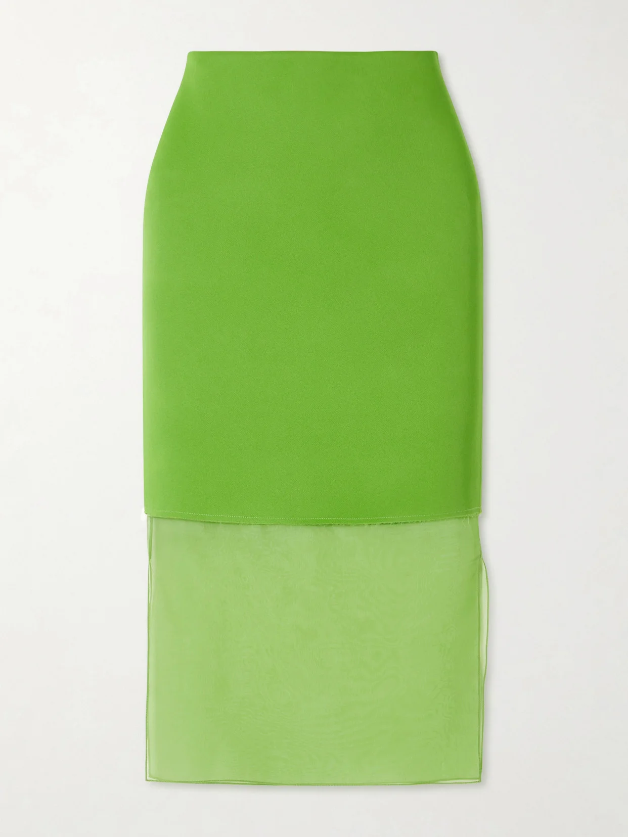 Sybil Layered Frayed Satin-crepe And Organza Midi Skirt