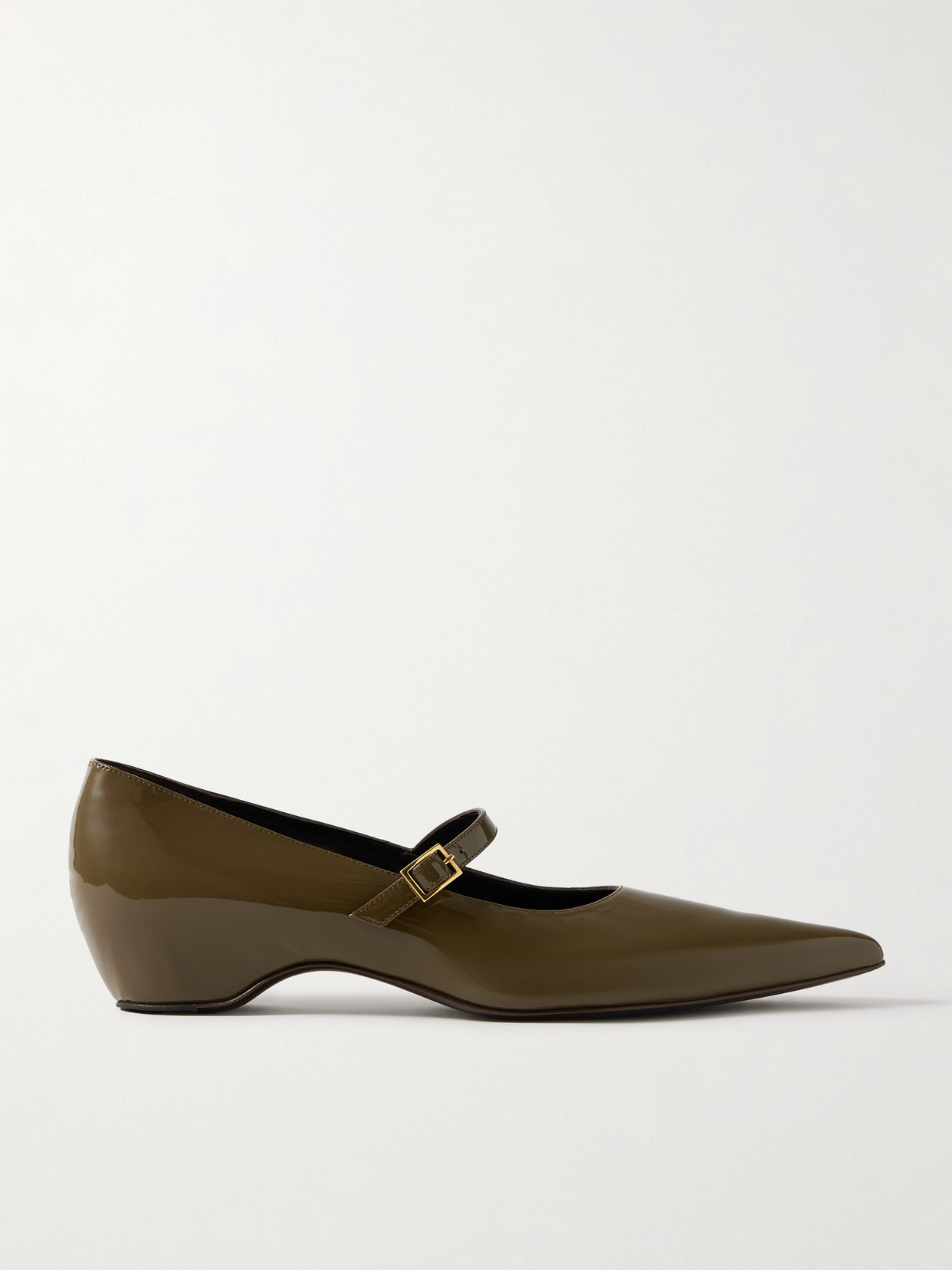 Like all of the shoes in KHAITE's Resort '25 collection, these 'Sybil' pumps are inspired by dance styles. They've been made in Italy from glossy patent-leather and have elongated pointed toes and Mary Jane straps. The curved heel offers just a bit of lift.