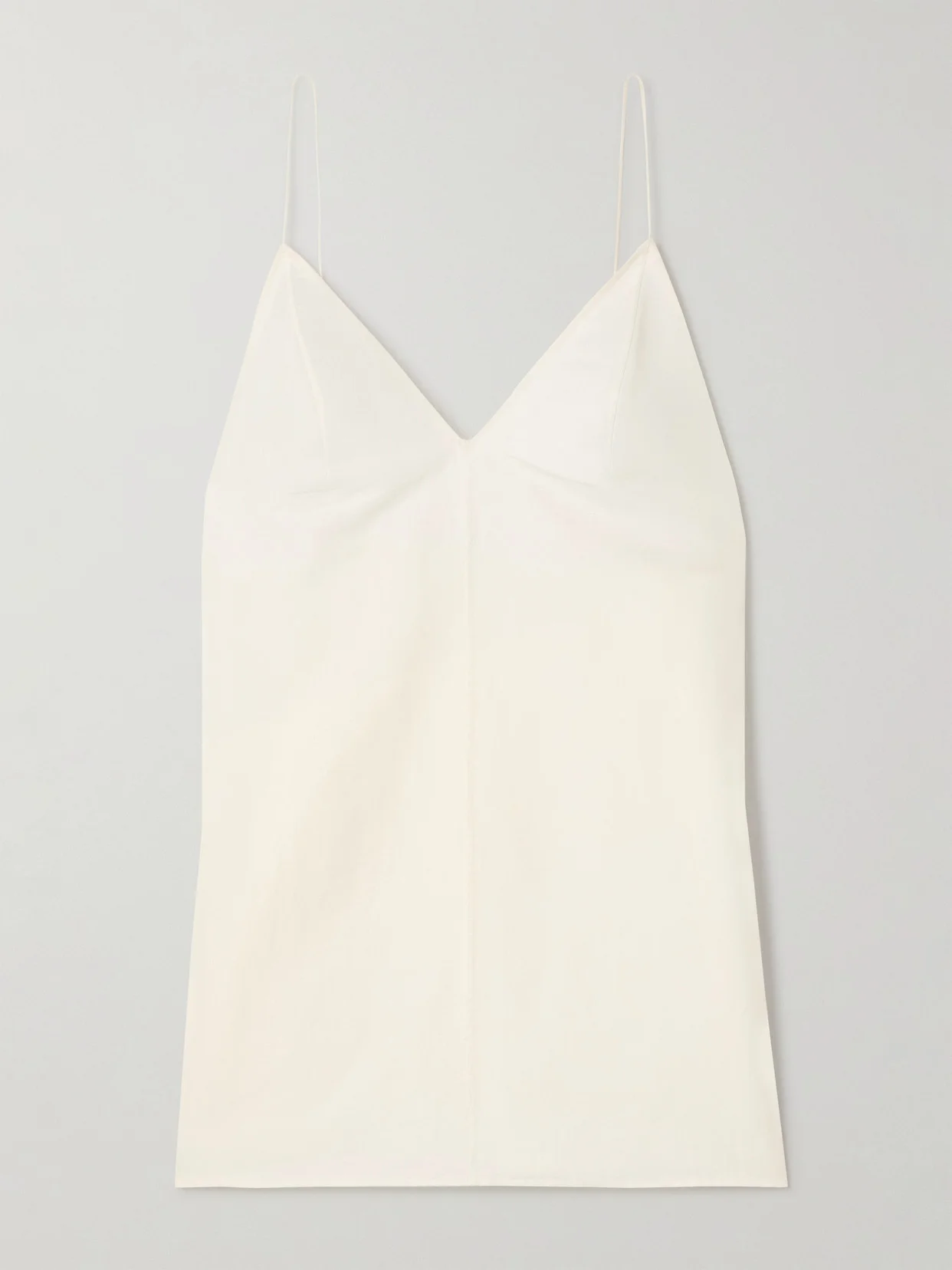 KHAITE's Spring '25 collection features an array of unique, archival fabrics - including organza, which combines the airy feel of traditional organza with the crispness of poplin. This 'Talsie' tank is cut from a silk and cotton-blend and has pin-thin straps and darted cups.