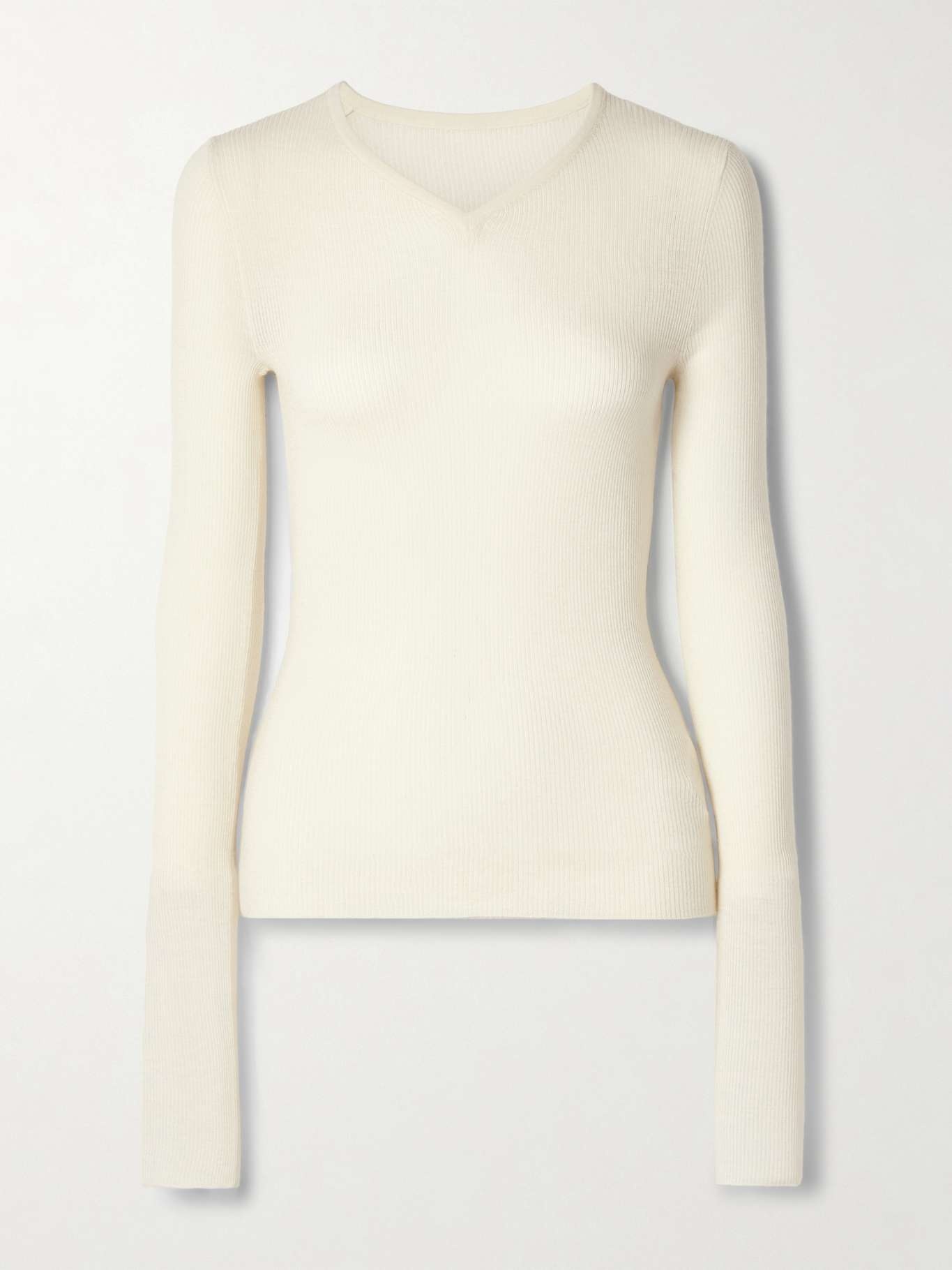 EDITORS'NOTES KHAITE's 'Tania' top is the perfect foundation for any outfit, from sharp tailoring to elegant skirts or casual jeans. It's made from a lightweight wool-blend that's ribbed to accentuate the close fit and has a V-neckline. SIZE & FIT - Fits true to size, take your normal size - Designed for a close fit - Lightweight knit - Model is 180cm/ 5'11" and is wearing a size Small DETAILS & CARE - Cream wool-blend - Slips on - 99% wool, 1% polyamide - Designer color: Glaze