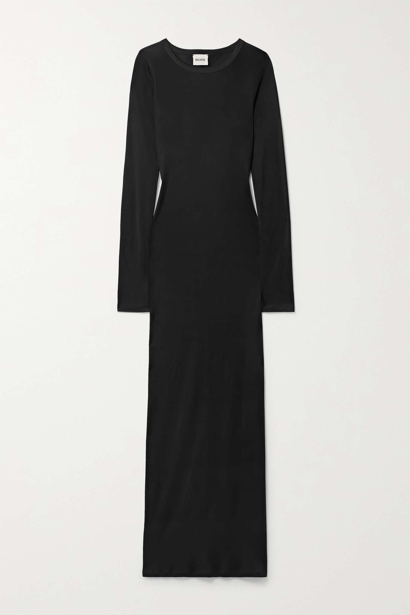 EDITORS'NOTES Khaite's 'Bayra' maxi dress can be worn casually with sneakers or dressed up with pumps and jewelry. Designed for a slim fit, it's made from stretch-jersey that has a subtle luster and molds effortlessly to your shape. SIZE & FIT - Fits very small to size, take two sizes larger than normal - Designed for a close fit - Slim fitting sleeves - Lightweight, slightly stretchy fabric - Model is 180cm/ 5’11”, normally wears a size XSmall and is wearing a size Medium DETAILS & CARE - Black stretch-jersey - Slips on - 100% viscose