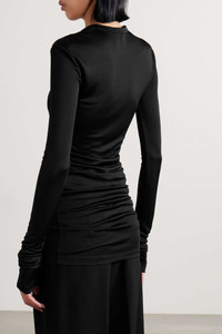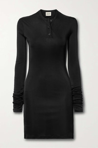 EDITORS'NOTES Khaite's 'Byron' dress is designed for a figure-skimming fit that's perfect for layering with light jackets or sweaters. It's made from smooth jersey and has functional buttons at the crew neckline. Layer your bracelets or watch over the knuckle-grazing sleeves. SIZE & FIT - Fits true to size, take your normal size - Designed for a slim fit - Lightweight, stretchy fabric - Model is 180cm/ 5’11” and is wearing a size Small DETAILS & CARE - Black jersey - Button fastenings along front - 100% viscose; buttons: 100% horn (Buffalo)