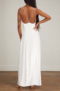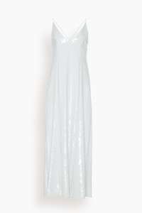 The Khaite Carina Dress is a statement making piece to wear to your next event. This maxi dress is crafted in allover sequins with a slim silhouette. Wear yours with heels and a clutch. - Fits true to size, take your normal size - Maxi length - Allover sequins - V-neckline - Slim silhouette - 100% Viscose