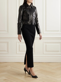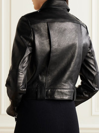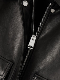 Khaite's latest collection evokes "an escape into the New York night", and what cooler design to wear on that adventure than this 'Cordelia' jacket? Made from smooth leather for a slim fit, it has flap pockets and shoulder epaulettes. It has a slightly cropped hem complete with belt loops and a concealed placket for a streamlined appearance. Size & Fit - Fits true to size, however those who are between sizes should take the smaller size - Designed for a slim fit - Cropped length - Supple, non-stretchy leather - Model is 175cm/ 5'9" and is wearing a US 2 Details & Care - Black leather - Concealed zip fastening through front - 100% leather (Lamb); lining: 100% silk - Specialist clean