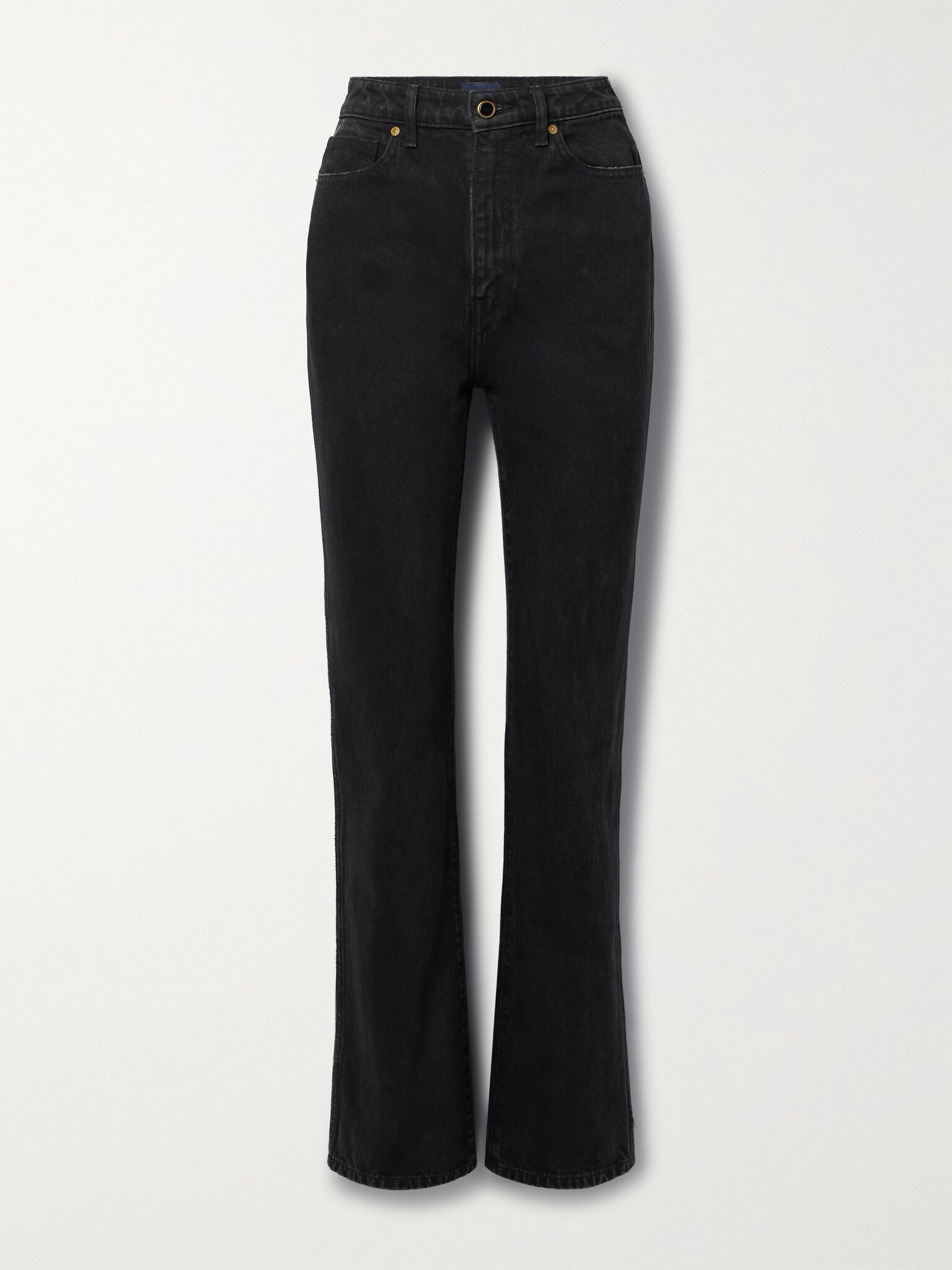 Khaite's effortless approach is consistent with every design, including the label's denim. These 'Danielle' jeans have a high-rise waistband that makes the slim legs look even sleeker. Each pair is faded and whiskered by hand to look perfectly worn. Size & Fit - Fits small to size, take one size larger than normal - High-rise, cut for a slim fit - Mid-weight, non-stretchy fabric - Size 27 jeans have an inside leg of 32”/ 83cm - Model is 180cm/ 5'11", normally wears a size 26 and is wearing a size 27 Details & Care - Black denim - Button and concealed zip fastening at front - 100% cotton - Hand wash - Designer wash: Prescott