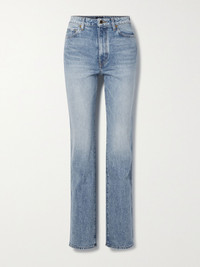 Khaite's approach to denim is no different to that to the brand's tailoring or knitwear - it skillfully balances elegance and comfort. These 'Danielle' jeans are cut from classic light-blue denim and have a high-rise waist. Subtle fading and a glossy enameled button provide considered finishing touches. Size & Fit - Fits true to size, take your normal size - High-rise, cut for a straight-leg fit - Mid-weight, slightly stretchy denim - Size 26 jeans have an inside leg of 32.7”/ 83cm - Model is 177cm/ 5'10" and is wearing a size 26 Details & Care - Light-blue denim - Button and concealed zip fastening at front - 98% cotton, 2% polyurethane - Hand wash - Designer wash: Bryce Stretch