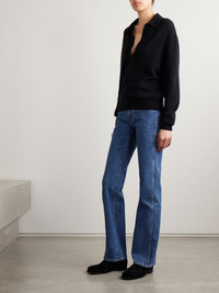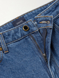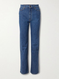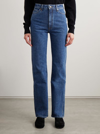 KHAITE's effortless approach is consistent with every design, including the label's denim. These 'Danielle' jeans have a high-rise waistband that makes the slim legs look even sleeker. Each pair is faded by hand to look perfectly worn. Size & Fit - Fits true to size, take your normal size - High-rise, cut for a slim fit - Mid-weight, slightly stretchy denim - Size 26 jeans have an inside leg of 33"/ 84cm - Model is 180cm/ 5’11” and is wearing a size 26 Model measurements: - Bust: 79cm/ 31” - Waist: 61cm/ 24” - Hip: 89cm/ 35” Details & Care - Blue denim - Button and concealed zip fastening at front - 98% cotton, 2% polyurethane - Hand wash - Designer wash: Montgomery