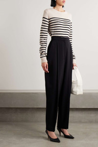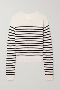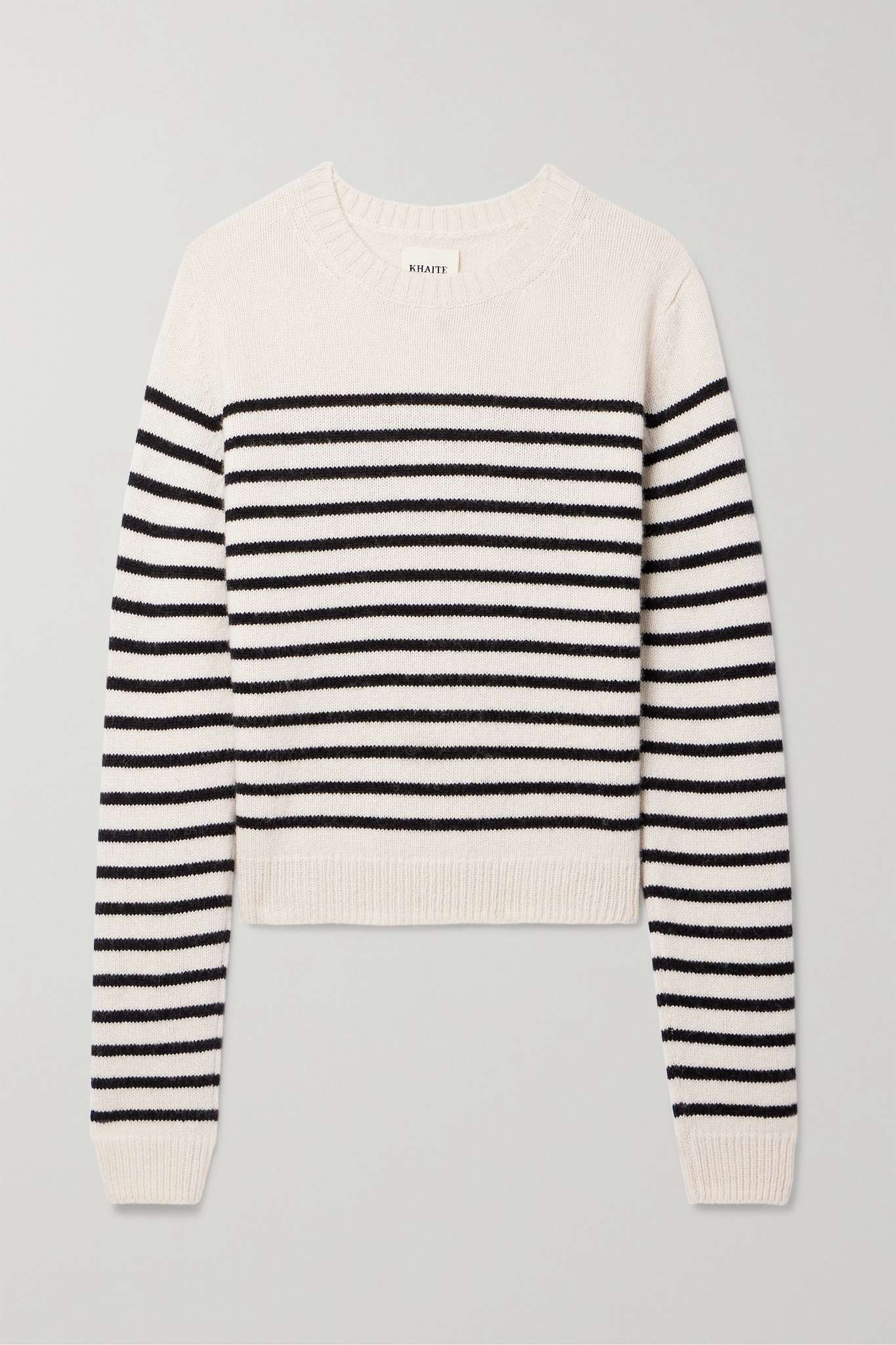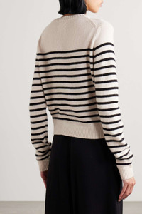 EDITORS'NOTES Khaite's 'Diletta' sweater feels especially classic thanks to the contrasting stripes and fisherman-style ribbed trims. It's made for a relaxed fit from soft cashmere and has extra long sleeves that bunch elegantly around your watch. SIZE & FIT - Fits true to size, take your normal size - Designed for a relaxed fit - Ribbed hem - Lightweight knit - Model is 180cm/ 5’11” and is wearing a size Small DETAILS & CARE - Cream and black cashmere - Slips on - 100% cashmere - Designer color: Magnolia/ Black