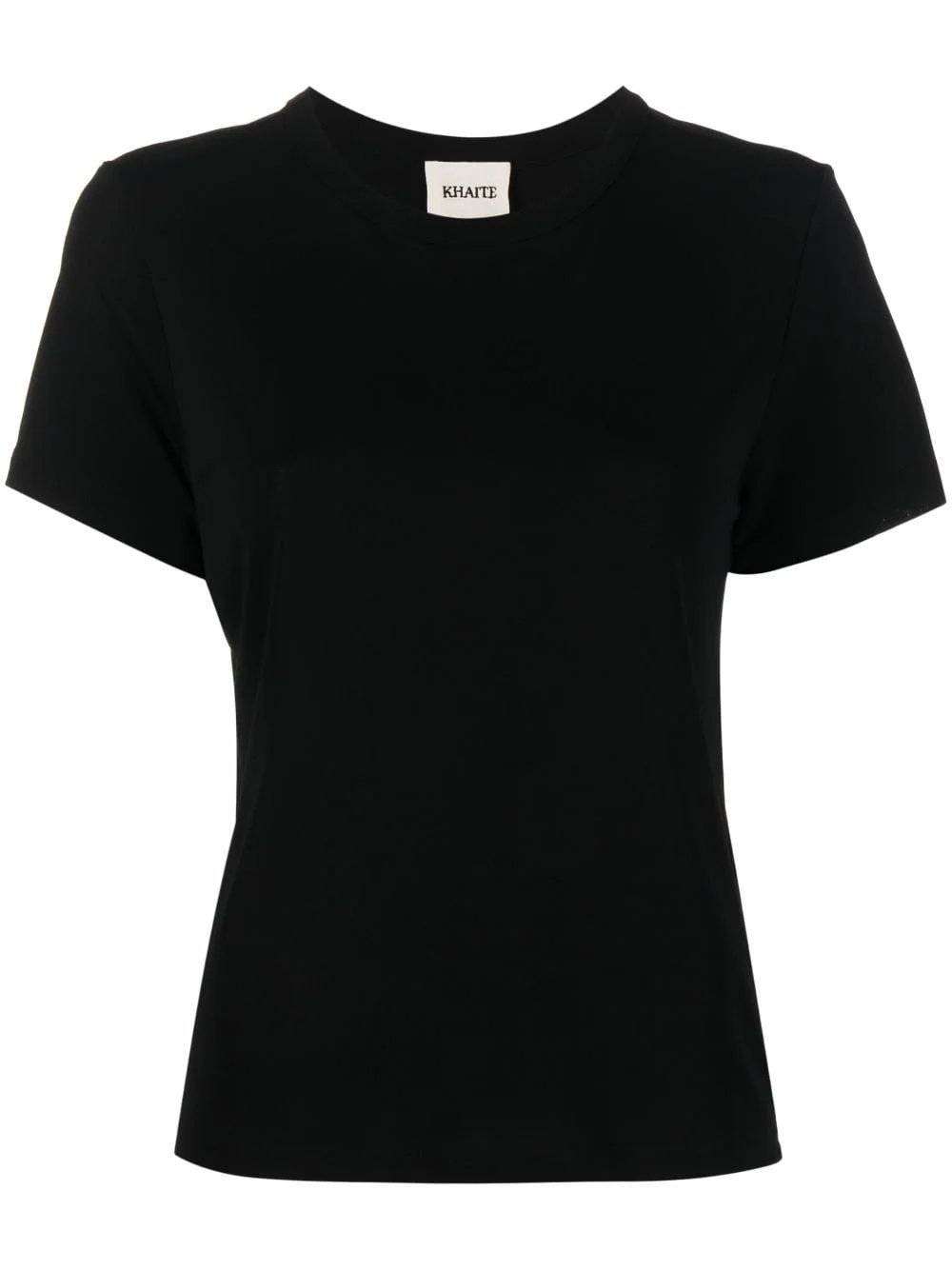 The Emmylou T-shirt KHAITE presents this crew-neck T-shirt for the AW23 collection. Rendered in solid black, it combines clean lines with a versatile matte finish. Highlights - Black - Jersey texture - Matte finish - Crew neck - Short sleeves - Straight hem Imported Composition Viscose 100% SIZE & FIT Model measurements Height 5 ft 11 in(1.8 m) Bust/Chest 34.25 in(87 cm) Hips 35.82 in(91 cm) Waist 24.8 in(63 cm)