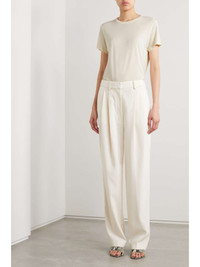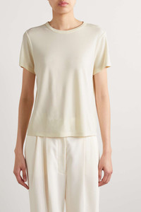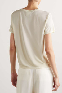 EDITORS'NOTES Khaite's collections are filled with wardrobe essentials like this 'Emmylou' T-shirt. It's cut from jersey and has a ribbed crew neck. Wear it with everything from your favorite jeans to tailored pants. SIZE & FIT - Fits true to size, take your normal size - Designed for a slim fit - Lightweight, slightly stretchy fabric - Model is 180cm/ 5’11” and is wearing a size Small DETAILS & CARE - Cream jersey - Slips on - 100% viscose