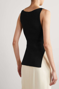 EDITORS'NOTES Fall '23 is the perfect time to invest in wardrobe staples, and the simple shape of Khaite's 'Evelyn' tank certainly qualifies. Made from ribbed-knit, it has a chic boat neckline and deep splits along the sides, so it'll drape effortlessly over a skirt or pants. SIZE & FIT - Fits true to size, take your normal size - Designed for a slim fit - Mid-weight knit - Model is 180cm/ 5’11” and is wearing a size Small DETAILS & CARE - Black ribbed-knit - Slips on - 75% viscose, 15% polyester, 9% polyamide, 1% elastane